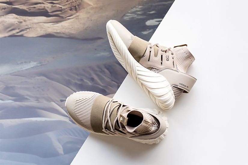 On the intersection of design and performance, the adidas Consortium Tubular Doom PK stands for deserts and urban spaces alike. Both are challenging landscapes where one has to adapt to a variety of sometimes demanding conditions. For extra motion on turf along the way, the adidas Primeknit construction – as well as its bold midfoot elastic straps – guarantee freedom and stability.