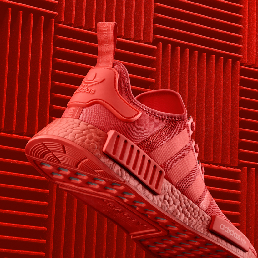 The first silhouette, the MMJ_NMD_XR1, sees 2016’s most groundbreaking silhouette, the NMD, reimagining in Mastermind’s uncompromised design language. A pitch black colour palette is applied to the shoe’s knitted upper, structural overlays and EVA midsole plugs, countered by branding details on the insole, tongue and TPU cage atop a classic BOOST tooling and three sets of custom laces.